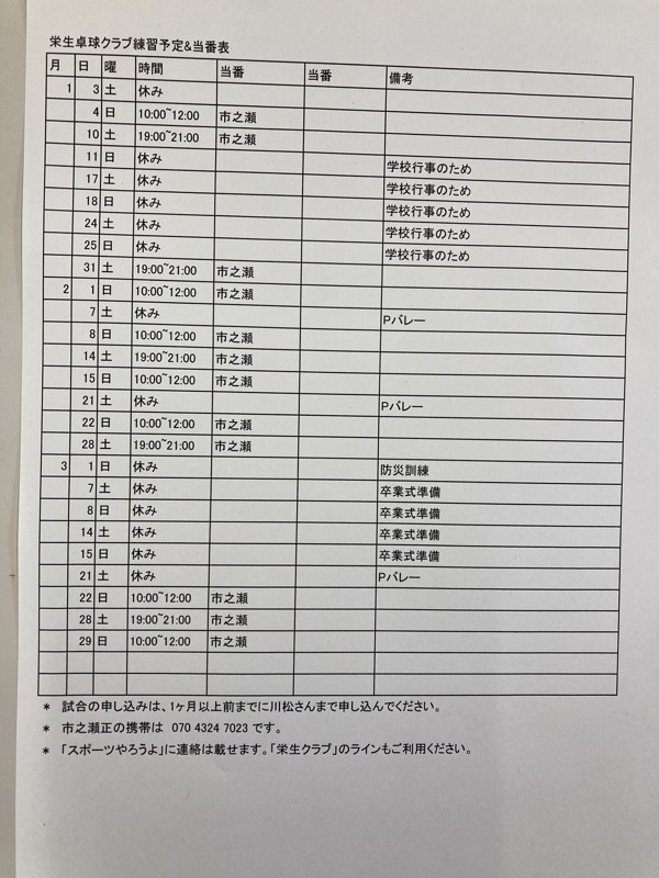 - 回答:栄生卓球クラブ 2026年01月05日