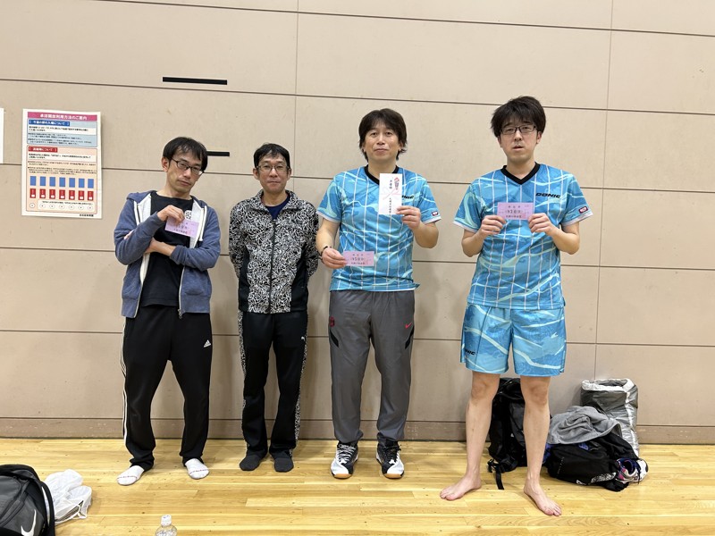 | 連絡事項や アピールポイント | ほとんどのメンバーは学生時代に実績がありませんが、チームに入ってから試合で成績を残せるようになったメンバーが多数います。学生時代勝てなかったりしても頑張り次第で社会人からでも充分強くなれます!卓球だけではなく、大会後に飲み会など積極的にやっているので、コミュニケーションもバッチリです!いろいろな業種、職種のメンバーがいるので交友関係が広がります。卓球を再開して仲間と充実した時間を過ごしたい方、まずは見学からでも良いので、お気軽にご連絡ください。女性メンバーも積極的に募集しています!ぜひぜひご連絡くださいお待ちしています。 |