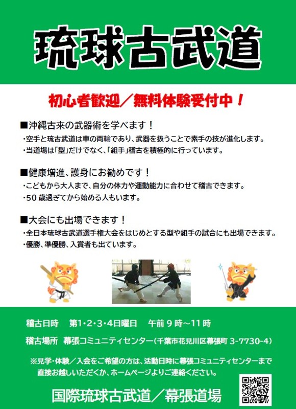 「国際琉球古武道/幕張道場」への質問一覧