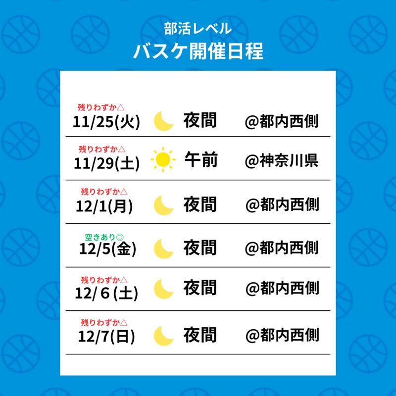 バスケ東京東京のバスケチームです。現在、メンバーを募集しています。募集しているのは友達作れる⛹️♂️⛹️♀️楽しく健康維持💪レベル分け有🌟初心者〜上級者まで楽しめる❗️。バスケに興味がある方は、ぜひご応募ください。| 募集の状態 | 募集中 |