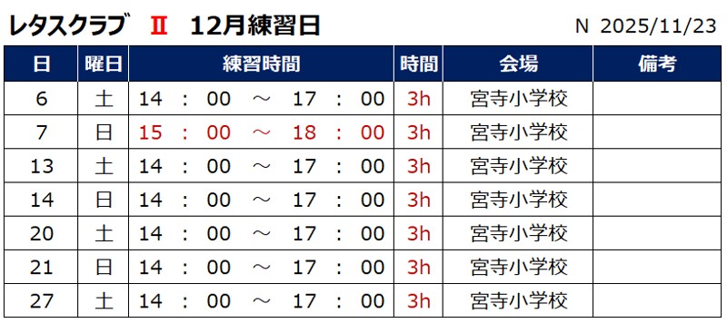 | 活動時間 | 毎週土日、時間は添付の写真をご確認下さい |