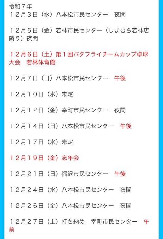 - 回答:※女子メンバー大募集!フェニックス(三本松卓球同好会) 2025年12月02日