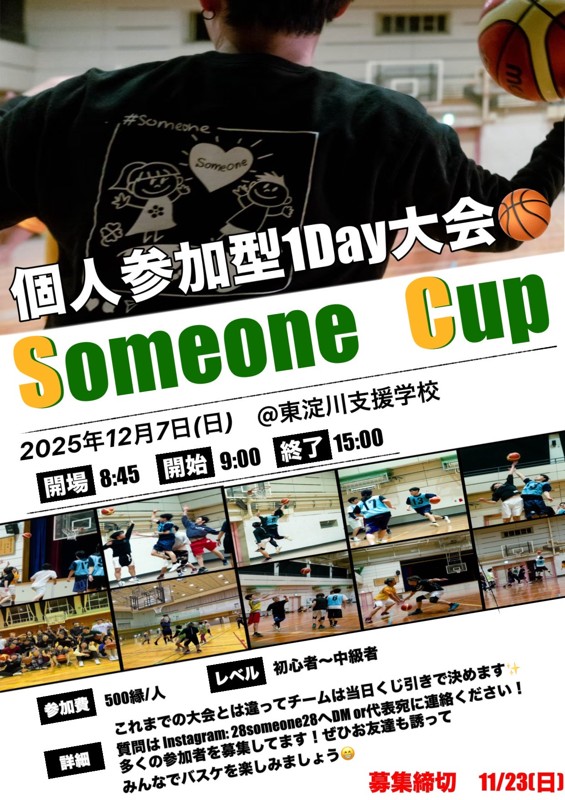 | 連絡事項や アピールポイント | someoneは2021年11月設立の初心者向け、個人参加型スポーツサークルです🍀 設立したばかりですので、メンバー募集しております!! マネージャーも募集してます! お一人でも参加しやすいように取り組んでいます♪ 幅広い年齢層の方、いろんな国から参加してくださる方との出会いに感謝です🍀 🍀someoneはこんなサークルです!!🍀 1.リピーターが多い! 各イベントのリピーターさんと初参加者さんの割合が8:2くらいです。 リピート率が高いので、メンバーさん同士、顔を合わせる回数が多くなり仲良くなりやすいです! 仲良くなったメンバー同士で飲みに行ってたりもしてます😊 2.多彩なイベント!! スポーツを中心に様々なスポーツをしています♪ スポーツによって参加者も変わったりします! 主なスポーツはバスケ、バレー! 季節の催し事で花見、BBQ、ハロウィンパーティーなどしています!! 3.友達と参加が多い! 特に女性は、友達を連れて参加される方が多いです。 友達に紹介できる安心、安全なサークル運営を心がけています! 4.国際交流の場となる! 最近ではアメリカ ・フランス・フィリピン・イスラエル・韓国・台湾 また、留学経験者やワーキングホリデーに参加した方など多彩な文化を持った人たちが参加してくださいます🌏 スポーツは言語を超越します! 海外の方も日本語を話せてとてもフレンドリーなので、気軽に来てください😊 5.豊富な開催実績! 月に2〜4回イベントを開催してます🍀 参加頂いてるメンバーさんに感謝です☺️ ぜひ、Instagramを見て確認していただき、よろしければフォローしてください🍀 ★今後の活動★ ※シフトを確認してから参加したい方は、「シフト確認後参加、いつまでに確定します。」と連絡頂ければ、できる限り参加の方向で調整させて頂きます。 🍀開催予定!! 現在募集中 〜〜〜〜〜〜〜〜〜〜〜〜〜〜〜 🌈12/7 (日)個人参加型1DAY大会🏀 9:00〜15:00 場所:新大阪駅・崇禅寺駅近くの教育施設 参加費: 500縁(初参加は1,000縁) ※今回は40〜60名集まって開催したいです! 一旦23日で募集締め切りますので、それまでにご連絡ください! 〜〜〜〜〜〜〜〜〜〜〜〜〜〜〜 活動記録はInstagramでご確認お願い致します!! ※場所を知りたい方はメッセージください! ※上記のスケジュールは予定ですので、変更する場合があります。 ご了承ください。 【各イベントについての連絡事項】 募集年齢:20歳~ ※参加をキャンセルする方は、必ず前日までにご連絡ください。 ⚠️宗教・ネットワークビジネス、その他の勧誘行為は禁止 もし、宗教・ネットワークビジネス、その他の勧誘行為を受けた場合は主催者まで連絡ください。対応させて頂きます! ケガ・事故に関しては自己責任とし、当サークルは責任を一切負わないこととします。 【応募方法】 応募は当サイトのメッセージ、あるいはInstagramのDMでいつのどのイベントに参加したいかご連絡ください‼️ ※受付完了の自動メッセージは送信されません。 確認後、順次返信させて頂きますが、多忙のため返信には3日程かかることもあります。(特に土日を挟むと遅れます。) ※活動が始まると返信できないことが多いので、開始時刻までに問い合わせください。 🍀過去の活動🍀 過去の活動の様子はサークルホームページにアップしています♪ Instagramのフォローお願いします!! ↓↓↓ https://www.instagram.com/28someone28 TikTokでオフの姿も投稿しています! フォローよろしくお願いいたします🤲 ↓↓↓ https://www.tiktok.com/@someone.allstar?_t=8eR9AEx484P&_r=1 🍀someoneのモットー🍀 🌻1人でも気軽に参加できる雰囲気作りを目指します! 参加は毎回参加でなくても気が向いたとき、タイミングが合った時だけでOK! 久しぶりに動きたくなったから参加しようくらいの感じでOKです! 🌻安心して参加できるサークルを目指します! 宗教・ネットワークビジネス、その他の勧誘行為は一切禁止します! もし、宗教・ネットワークビジネス、その他の勧誘行為を受けた場合は主催者まで連絡ください。対応させて頂きます! 🌻トラブルがないサークルを目指します! someoneでは、グループLINEを作成しません。 グループLINEを作成すると望まない個人間でのやり取りから、トラブルに発展することがあるので、 サークルとしてはグループLINEは作成しません。 みんなの笑顔が見られて幸せです☺️ 地球が笑顔のフローラで満たされますように🍀 全ての出会いに感謝🌏 |