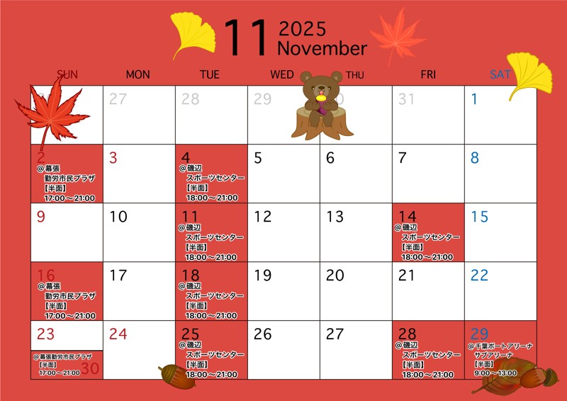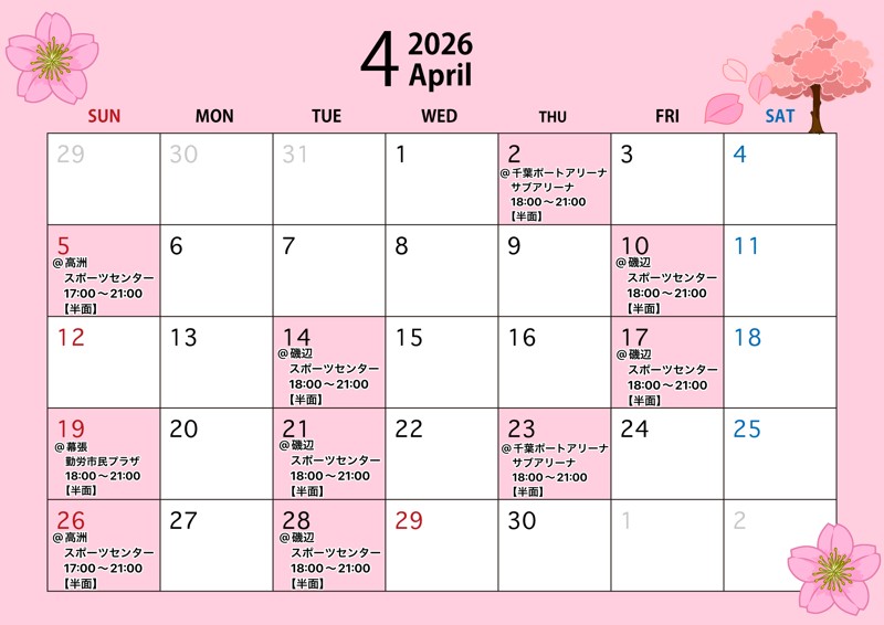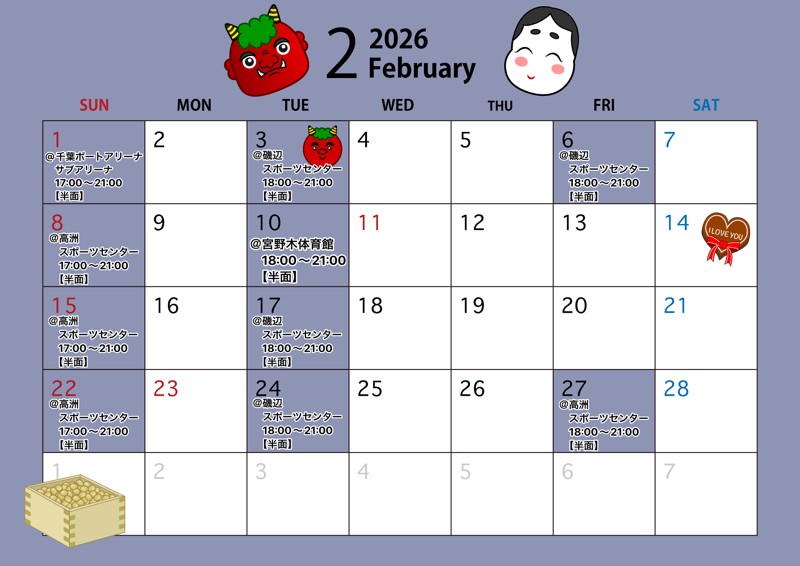 | 活動場所 | 千葉:千葉市営体育館(高洲スポーツセンター、磯辺スポーツセンター) |