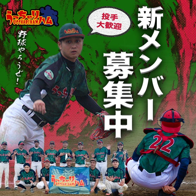 | 連絡事項や アピールポイント | うっちゃりハムの山口と申します。 現在、メンバーの転勤や異動が重なり集まりが悪くなり新メンバーを募集しております。 当チームは福岡市とその周辺を拠点にリーグ戦とトーナメントにも参加しており活動は毎週日曜で月1回のオフを目安に活動しております。 メンバー同士が仲良く楽しく活動をしているのが特徴です。 毎試合楽しみながら勝利主義というよりは勝っても負けても楽しくをモットーに活動しております。 チームのレベルは勝ったり負けたりとそこまでレベルが高いチームではありません。 約半数はネットからの応募で入部しております。 福岡県外出身者が半数で身内の集まりのチームではないので馴染みやすい環境だと思います。 インスタで【うっちゃりハム】で検索していただければチームの雰囲気が伝わると思います。 【選手募集条件】 ☆野球経験者(経験は問いません) ⚫︎年齢 20歳〜30歳 ⚫︎出席率 なるべく月1、2回以上を保てる方 ご興味ありましたら、下記の必要事項を記載のうえ、ご連絡をお願い致します。 <必要事項> ・お名前 ・年齢 ・最終野球歴 メッセージいただきましたら最短の試合の日程をお伝えしますのでまずは体験で参加してみて入部を決めていただければと思います |