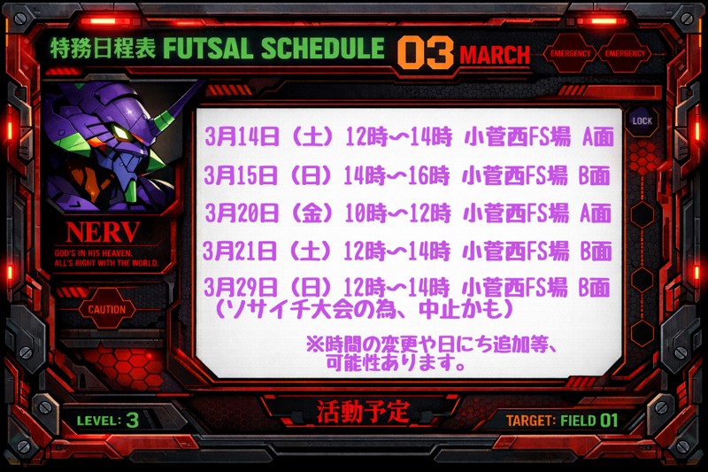 | サークル目標 | 仲良く楽しく怪我なく、先ずはフットサルを楽しくプレイする事!そして、2025年には小さな大会等には参加出来ればと思います! |