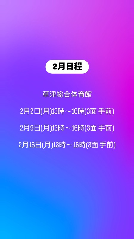 | 連絡事項や アピールポイント | 和気あいあいとしたチームです🎶 軽く基礎打ち後、ダブルスのゲームを しています。 最近では試合にも出場したりしています。 GWにはBBQ🍖✨ 年末には忘年会🍺などもします。 みんなで楽しくのサークルです! ※初級~中級レベル (ルールを理解しダブルスの試合が出来る方) ※参加費初回500円、2回目以降800円 ※シューズ、ラケット等ご持参下さい。 ※まずは見学からでもOK! ※女性大募集中 ※Instagramにも日程と活動の様子をup📷していますので、そちらもご覧下さい😊🎶 Instagramにメッセージ 送っていただいても対応します。 |