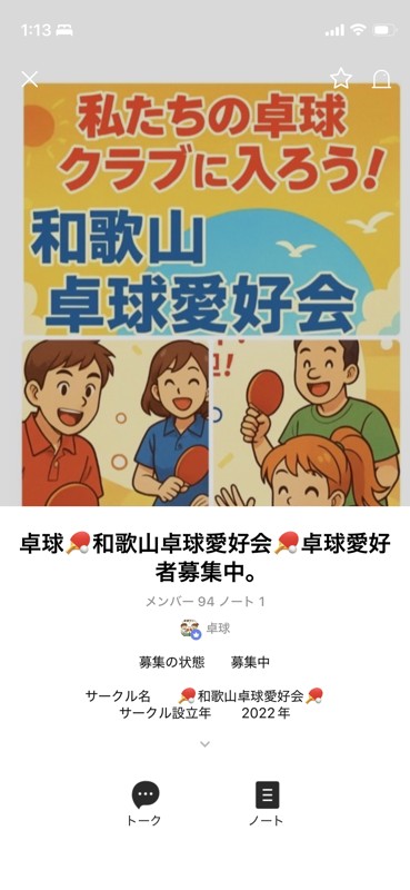 サークル「🏓和歌山卓球愛好会🏓」のメンバー募集情報