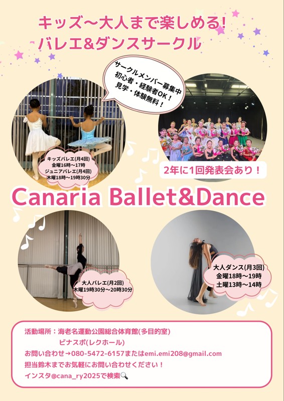 サークル「カナリアバレエ&ダンスサークル」のメンバー募集情報
