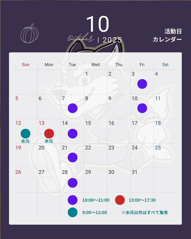 | 活動時間 | 平日夜間練習、土日練習試合などになる予定 |