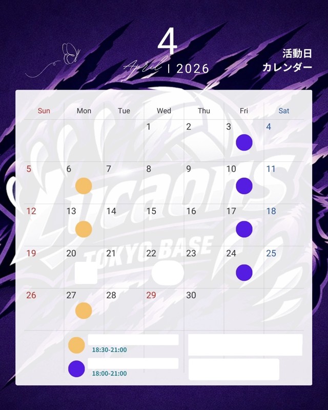 | サークル名 | 4/6月曜日練習あり//Lycaons TOKYO BASE(リカオンズ)・男子6人制 |