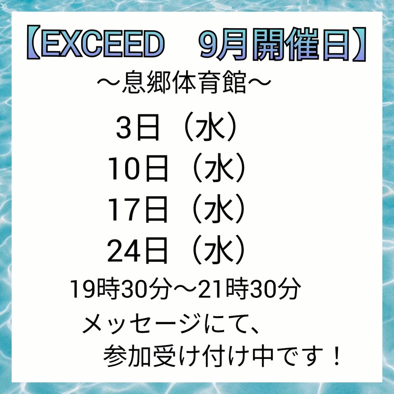 連絡事項や アピールポイント | 【バドミントンサークル EXCEED】 『EXCEED』へようこそ! 他のサークルでは、『基礎打ち→ゲーム練習』のところがほとんど 『EXCEED』では『基礎打ち→練習→ゲーム練習or練習』 と基礎打ち終わってからは、各自でしたい練習を40分〜1時間設けています! 練習では、パターン練習、ノック練習、苦手なショットの練習など自分がしたい練習ができます! その後にゲーム練習を行い、練習の成果が生かせるか試したりできます! さらに 市民大会など試合に参加されてる方は、お互いに相談したり、話し合いをしながらゲーム練習、練習ができるので、市民大会などの常連さんにはオススメです! 【初心者も歓迎】 初心者の方も募集しています! 主に基礎練習が多めにはなりますが、試合のルールをゲーム練習中に学ぶこともできます! ※レベルは分けますので、バドミントン経験者同士でゲーム練習をしていただけます! 【開催日時&場所】 場所 息郷体育館 時間 19時30分〜21時30分 ※2人だけでも、開催しますので急遽当日参加したい方は、当日メッセージお待ちしています! 【内容】 ①基礎打ち 20分 ※基礎打ちができない方はいきなり練習からスタートできます。 ②練習 全体で30分〜60分 ・1人でだいたい10分程で回していきます ・ノックはできる人が行なってください ノックの球出しできない場合は代表が行います ・練習ペアは、こちらで決めさせていただきます なるべくレベルが同じなるように配慮します ③ゲーム練習 40分〜60分 ・21点1ゲーム ・試合近い方はペアで組んで試合可 ・シングルの試合も可 ・レベル別試合も可 ・ゲーム練習時間の参加は強制ではありません ・練習したい方は代表がお手伝いさせていただきます 希望があれば、何でも言ってください! ※②の練習では苦手なショット、基礎練習、ノック、パターン練習などをおこないます! ※③ゲーム練習時間にしていますが、休憩中に練習も可能です! ③ゲーム練習時間に②の練習続けたい方は練習していただいて大丈夫です! 【練習のメニュー例】 ① 基礎打ち20分→練習40分→練習60分 ② 基礎打ち→20分→練習40分→ゲーム練習40分→練習20分 ※↑あくまでも例題です 人数によって変動ありますのでご了承ください。 【このような方にオススメ】 ・試合練習ばかりのサークルしかなく基礎練習できない ・試合が近いのにパートナーと合わす日がない ・スマホで練習している姿(試合している姿)撮りたいけど撮る機会ない ・分からないところをアドバイス欲しい ・みんなと合わす練習ばかりで自分で決めた練習がしたい などなど 【参加費】 1回 600円 【参加方法】 初回はメッセージでお願いします。 ※参加人数が2名でも開催します 【10月 開催日】 息郷体育館 19時30分〜21時30分 8日(水)終了 15日(水) 22日(水) 29日(水) 【持ち物】 ・ラケット ・シャトル※練習したいシャトル持参可 ・バドミントンシューズ ※もしくは体育館シューズ ・飲み物 ・参加費 ・自分のトレーニングに必要なもの (自由ですが、なるべく人に怪我が及ばないもの、体育館に傷つけないものお願いします) 【その他】 疑問、質問などもメッセージでお待ちしています! たくさんのご参加お願いします! 参加は、メッセージからお願いします! |