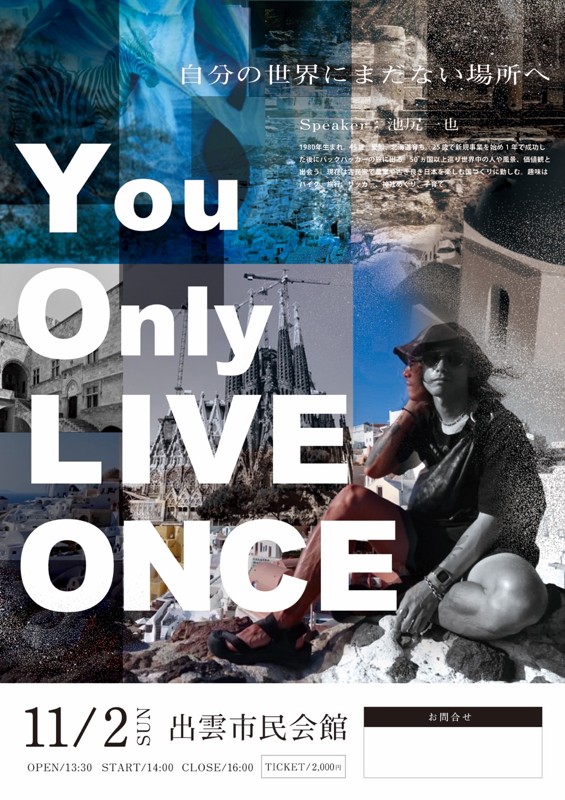 | 連絡事項や アピールポイント | ⚠️️急募⚠️ 【旅トークライブボランティアスタッフ】 ⭐️You Only LIVE ONCE〜自分の世界にまだない場所へ⭐️ 数ある中から見て頂きありがとうございます😊 私達夫婦に「You Only LIVE ONCE=人生一度きり」と生き方や考え方を教えてくださった師匠で、世界50ヶ国以上を旅してきた方の旅トークライブを「神の国」島根県出雲市で開催します🎊 25歳で新規事業を始め1年で成功し、その後1年の半分以上を使って世界を旅してきた経験豊富な方です🌏 旅をするとたくさんの人間成長があると言われています‼️ 計画力・コミュニケーション能力・判断力・危機管理能力・理解力・チャレンジ力・行動力・問題解決能力・ 柔軟な対応力そして感謝や人の温かさ😊 ⚪︎1人旅にオススメな国🌎 ⚪︎友達や仲間といくオススメの国🇪🇸 ⚪︎世界のオススメの絶景🇺🇸 などワクワク・ドキドキが止まらないトークライブです🤩 トークライブのボランティアスタッフを募集させて頂きます⭐️ 募集要項は下記の通りです❗️ 開催日程:2025年11月2日(日) 時間:13:00〜19:00ぐらいまで(設営から撤収までの時間)※時間は目安となります。 会場:出雲市民会館 URL:https://www.izumo-zaidan.jp/civichall/ チケット代:2000円(トークライブ中は特にやる事がないので、旅のお話をお聞きください😊) 作業内容:会場設営、音響確認、受付、PC接続など簡単なものばかりです💯 募集人数:10名(先着順) 募集年齢:20~35歳までの男女(社会人限定) ※チームワークとご縁を大切にしておりますので、事前にお会いできる方でお願いします✨ (私自身は関西住みです!できる限り柔軟に対応します💪) ⚠️開催までの活動スケジュール、開催後についてはお会いした時にしっかりご説明させて頂きます🙏✨ こんな方と一緒に開催したい😆 ○旅や旅行がとにかく大好きな方🙋♂️ ○みんなで力を合わせて目標をクリアすることが好きな方🙋♀️ ○楽しいことが好きな方🙋 ○新しい事にチャレンジしたい方🙋♀️ ○自分を変えたい方🙋 ○人として成長したい方🙋♂️ 🎉スタッフ特典🎉 ①世界50ヵ国以上旅してきた方を事前に数名ご紹介します❗️ 直接お話できる機会をセッティングします😁 ②9月末か10月上旬に島根県出雲市で開催するBBQにご招待します🍖 トークライブするスピーカーの方々やスタッフ同士でワイワイ楽しみましょう👍 ③先着5名のみ島根県出雲市までの交通費負担します⭐️ →車で行きますので、乗れる方は先着5名までですのでご了承ください🚗 皆さんで楽しみながら最高のトークライブにしていきましょう⭐️ そして皆さんのこれからの成長や幸せのきっかけになれば嬉しいです✨ ご連絡お待ちしております😊 |