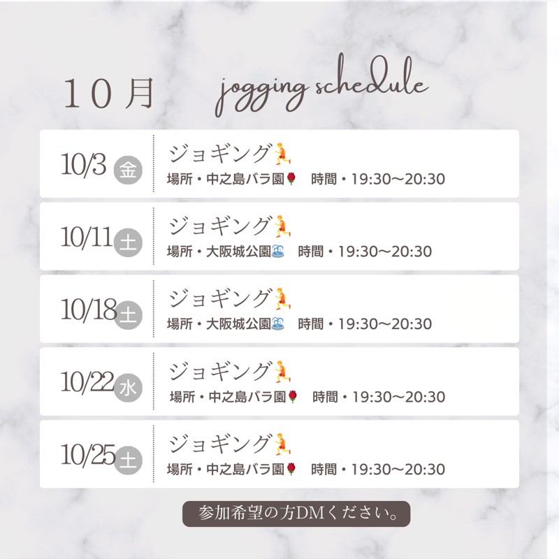 連絡事項や アピールポイント | 20代ジョギング🏃♀️ 📍場所:中之島公園バラ園🌹or大阪城公園🏯 ⏰所要時間:1時間程 💸予算:🆓 こんにちは🌞 仕事終わりに少し運動したい! 一人じゃなかなか続かない!と言った方是非ご参加下さい😊 本気でフルマラソン目指す❗️ とかではなくみんなで話しながらワイワイランニングできたらと思ってます❗️ 距離も中之島公園や大阪城公園を3キロ程を30分程度でスローペースでランニングしてます😊 疲れたら歩きます🚶笑 🌌こんな人におすすめ! ✅ 何か新しいことに挑戦してみたい! ✅ なかなか1人では続かない。 ✅ランニング通して健康にやりたい! ✅ 人と話すのは苦手だけど、一人で家にいるのも飽きた! ✅新しい友達欲しい🤝 💡初めてでも、一人でも、気軽に参加OK! 1人参加が多いです🙆 (一回の参加人数は大体5人ほどです) ⭐️インスタ始めました‼️ DMからの連絡でも大丈夫です🙆 ↓ https://www.instagram.com/walk__osaka?igsh=MWNlMHRzZXo 【10月ジョギング🏃予定🗓️】 10/3(火) 19:30〜20:30 中之島バラ園🌹 10/11(土) 19:30〜20:30 大阪城公園⛲️ 10/18(土) 19:30〜20:30 大阪城公園⛲️ 10/22(水) 19:30〜20:30 中之島バラ園🌹 10/25(土) 19:30〜20:30 中之島バラ園🌹 |