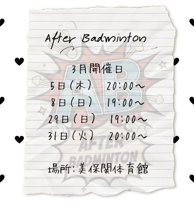 | サークル名 | After Badminton |