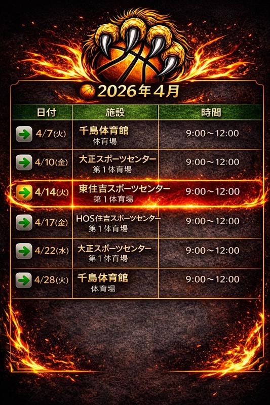 | 連絡事項や アピールポイント | 🏀 新規チーム スタートアップメンバー募集! 🏀 現在、新規立ち上げチームにつき メンバー大募集中です! 週5前後バスケしてるメンバーばかりなので、 バスケ好きな方はぜひ一緒にやりましょう! 大阪のバスケを 根こそぎひっくり返しましょー!!🔥 ⸻ 📍 次回練習予定 千島体育館 🕘 9:00〜12:00 ⸻ 🆕 新規スタートアップチーム 立ち上げたばかりなので、 みんな仲良く、雰囲気も良いです! ⸻ ワイワイ楽しくやりつつ、 勝負にはしっかりこだわるチームです💪 練習後は行ける人で ご飯に行ったりもしてます🍚 🏀 練習頻度 週3〜5回ほど 将来的には 大会出場を目標 にしているので、 コンスタントに参加できる方をお待ちしています🫡 少しでも「気になる」「やってみたい」と思った方、 ぜひご連絡ください! |