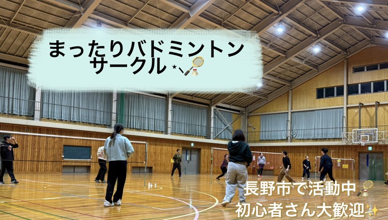 | 連絡事項や アピールポイント | 〜バトミントンメンバー募集‼️😊🏸〜 ・チーム方針 バドミントン仲間 を募集しています🏸🤝 社会人になって体を動かしたくなり、始めました⭐️ 「最近ちょっと運動不足かも…」 「ゆる〜くスポーツしたい!」 「初心者だけど大丈夫かな?」 👉そんな方にピッタリです🙆♀️✨ 男女混合でワイワイ楽しくバドミントンしています🤫🌸 一緒に体を動かして、リフレッシュしませんか?🏃✨ ⚠️営業・ビジネス・保険などの勧誘目的の方はご遠慮ください🙇♀️ 🟡男女比:6:4で20〜30がメイン👩🦱👨🦱 現在登録約60名 毎回10〜20名ほど参加しています。 🔰 初心者・ブランクあり大歓迎 🔰 1人参加がほとんど 🔰 ラリー中心・強打控えめコートあり 🔰 ラケット貸出あり 3面使用しており、 まったりコートと自由コートに分けて開催していますので、レベルに合わせて楽しめます🙌 年に1.2回ほど親睦会などもしてるので割とすぐに 馴染めると思います! 1人でも複数でも参加お待ちしてます♪ お気軽に連絡ください😌 ⭐️参加費初回無料! (2回目以降¥300体育館利用代、シャトル代に利用します) 🎁【紹介特典】 お友達を連れてきてくれた方は参加費無料! さらに2人紹介で、もう1回無料になります✨ 🟡詳細 【4月開催予定🏸】 4/4(土) 18:00〜21:00 長野運動公園総合体育館 メインアリーナ1/3北 4/11(土) 18:00〜21:00 柳原体育館 4/18(土) 17:00〜19:00 柳原体育館 4/22(水) 19:00〜21:00 長野運動公園総合体育館 サブアリーナ1/2北 4/25(土) 18:00〜21:00 柳原体育館 ・持ち物 ラケット 体育館シューズ ※ラケット、シャトルは無料レンタルできます。 |