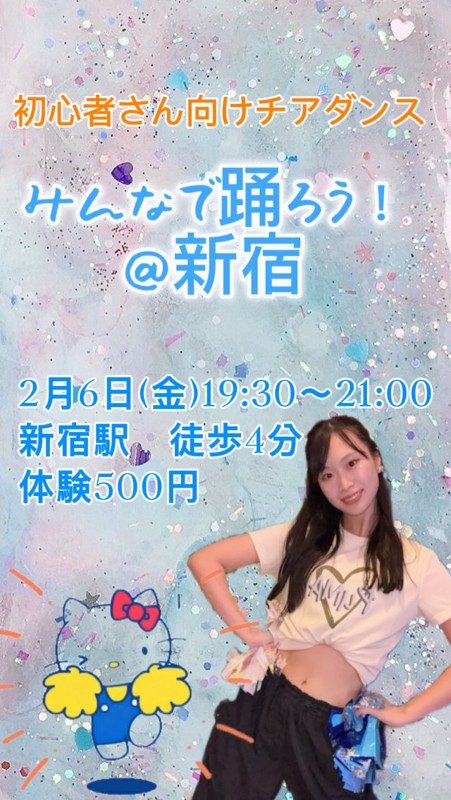 | 連絡事項や アピールポイント | ご覧いただきありがとうございます! 初心者さん向けチアダンスサークルの Luminaです! ダンススクールに行くのは不安な方も安心してください! まだ創立したてなので、少人数でまったり進めてます♪ 楽しく踊ってリフレッシュしましょう! 日時:2月6日(金)19:30〜21:00 場所:新宿駅 徒歩4分 持ち物:動きやすい服、室内ばき、飲み物 参加費:500円(PayPayまたは現金) ※2/13(金)と2/20(金)も同じ時間・場所で活動してます! こちらのご参加も大歓迎です♪ まだまだ参加者募集中なので ぜひ一度ご連絡ください☺️ 参加希望の方は「参加希望」とご連絡いただければOKです! 確認次第こちらからご連絡します! 公式LINEもやってます! https://lin.ee/MGavwruG 【講師について🌸】 いつもにこにこしてる!と言われるので安心してください!笑 Xリーグ🏈 Bリーグ🏀でプロとして活躍 そして競技チア全国準優勝の経験者です! 指導歴もバッチリなので、安心してお越しください! (27歳です!!) |