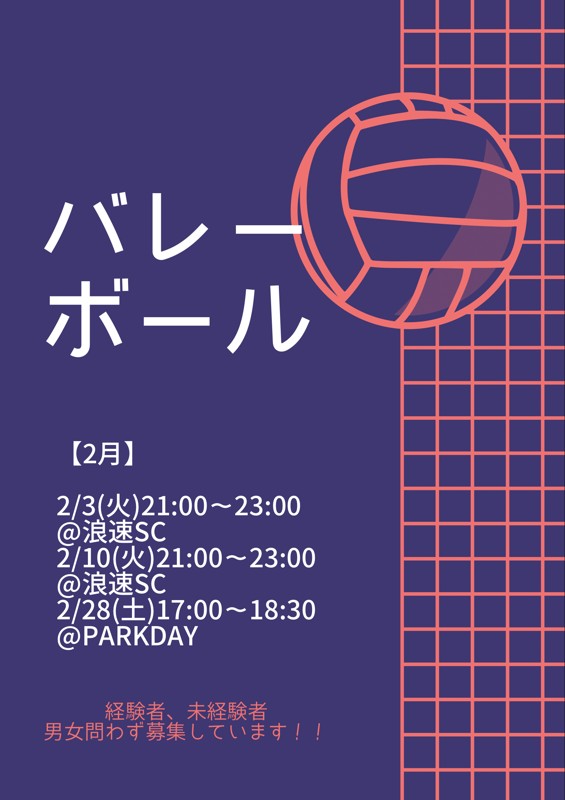 サークル「大阪市内スポーツ 2月掲載🏀🏐🏓」のメンバー募集情報