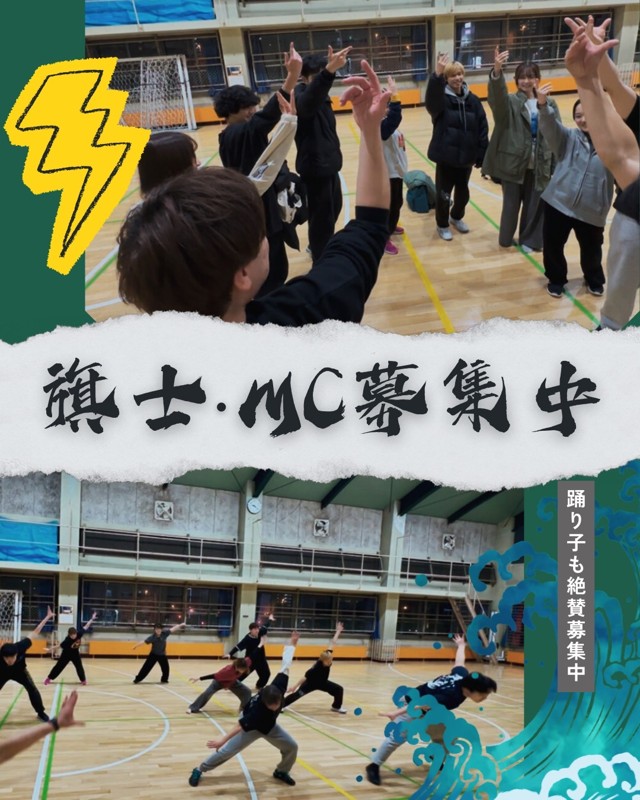 | こんな人を 探してます | 男女問わず楽しく活動することができる方!、未経験者🔰、経験者、MC、旗士 |