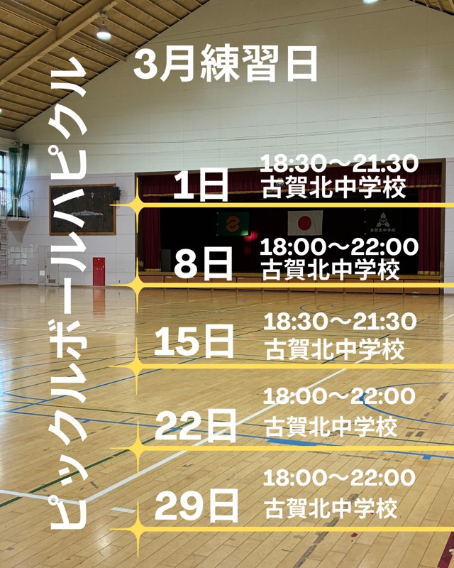 | 連絡事項や アピールポイント | はじめましてピックルボールチームのハピクルです 美和台小学校、コミセンわじろ、古賀市内小中学校で活動してます。 現在メンバーを募集しております⭐️ まだまだメンバーの少ないサークルですが元気と楽しさだけは何処にも負けません💪 【魅力ポイント】 初心者ばかり お友達とご一緒に参加OK 自由な集まりですのでたまに参加でもぜんぜんOK 10〜60代が一緒に仲良くプレーしてます ※殆どのメンバーが1人で体験に来て、その後継続して参加してもらってます 1人でも参加しやすい雰囲気です 【活動場所】 美和台小学校(2026.4月〜定期使用出来ます) コミセン和白 古賀市内小中学校 【活動時間】 毎週日曜日17:00〜22:00 (練習時間3〜4時間程度) 【募集年齢】 16歳以上~ 未成年の方については保護者様等同伴でお願いします 【参加費】 300〜400円 【持参品】 運動しやすい服装 屋内シューズ 飲み物 パドル(ラケット) 数本パドルレンタルあります(無料) 【お問い合わせ】 メッセージ #ピックルボールハピクル #ハピクル #ピックルボール #ピックルボール福岡 #テニス #メンバー募集 #コミセン和白 #社会人サークル #福岡市東区和白 #社会人サークル新宮町 #ピックルボールメンバー #社会人サークル和白丘 |