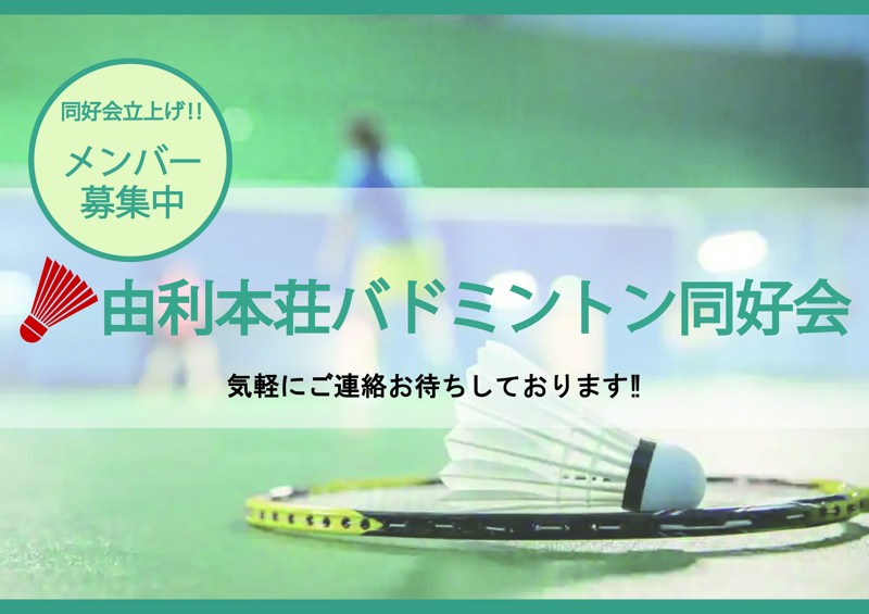 | サークル名 | 由利本荘バドミントン同好会|社会人バド|経験者歓迎|ブランクOK |