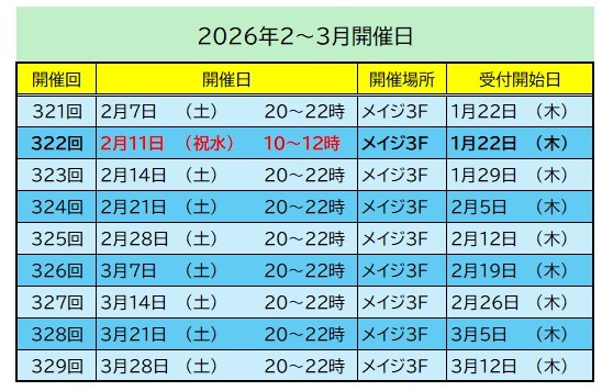 | 活動時間 | 毎週土曜日20時~22時(HPより確認下さい。) |